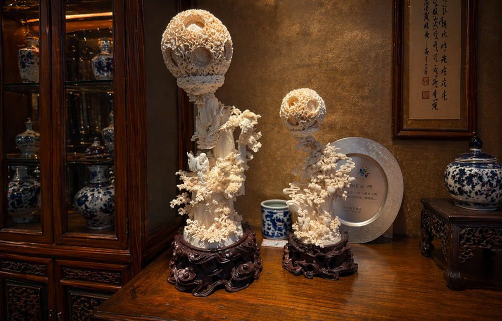 Современные мастера продолжают развивать эту традицию, используя бивень мамонта как основной материал. Это не только сохраняет технику, но и придает изделиям дополнительную ценность: каждый шар становится сочетанием древнего природного ресурса и уникального человеческого мастерства. Сегодня кантонские шары рассматриваются не только как произведения искусства, но и как коллекционные объекты музейного уровня. Их сложность, ограниченность и невозможность массового производства делают их особенно привлекательными для частных коллекций и инвестиций.