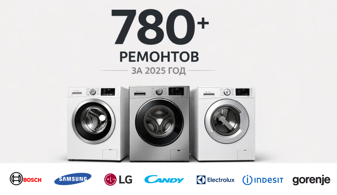 В 2025 году на счету мастера — более 780 отремонтированных стиральных машин. Значительная часть этих работ пришлась на аппараты среднего класса популярных брендов, где особенно востребованы точная диагностика, стабильная работа с электронными модулями и умение устранять неисправности без лишней замены узлов.
