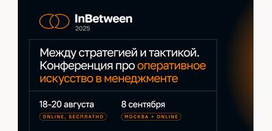 18 Августа 2025 Пресс-релиз: InBetween 2025: первая в России конференция о том, что на самом деле волнует руководителей между стратегией и тактикой В Москве состоится первая в России конференция «InBetween» про оперативное искусство в менеджменте. Между стратегией и тактикой. Событие о том, как эффективно действовать на самом сложном уровне управления: между стратегическими целями от топ-менеджмента и ежедневной тактической рутиной команд. Читать далее