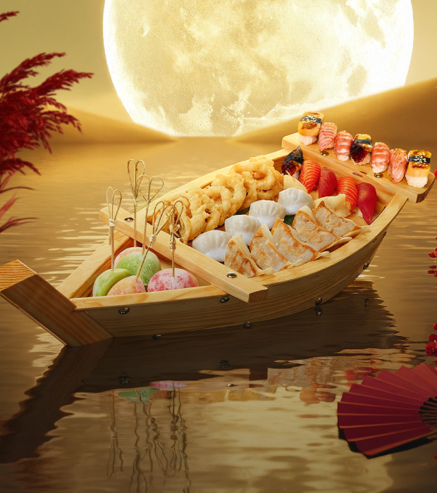По древнему обычаю этот день проводят в кругу близких, накрывая стол с особенными угощениями: дарами моря, сезонными плодами и моти. Вдохновившись этой традицией, Тануки представили авторский «Лунный сет» — праздничное меню, где собраны самое любимое из японской кухни: