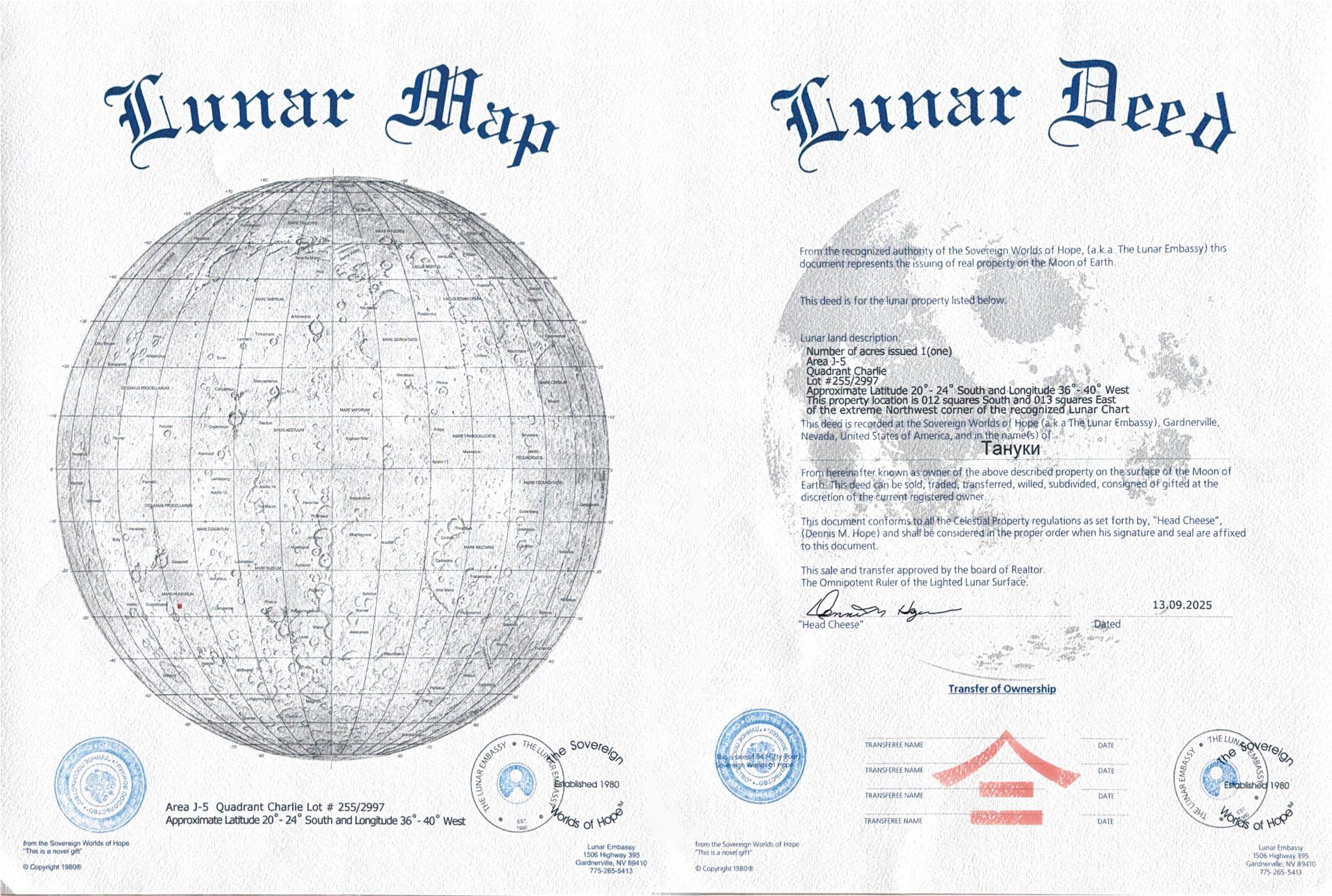 А еще в честь Цукими Тануки сделали символический шаг в будущее — приобрели участок земли на Луне в районе “Море Спокойствия”. Кто знает, возможно, именно там когда-нибудь появится первый космический ресторан.