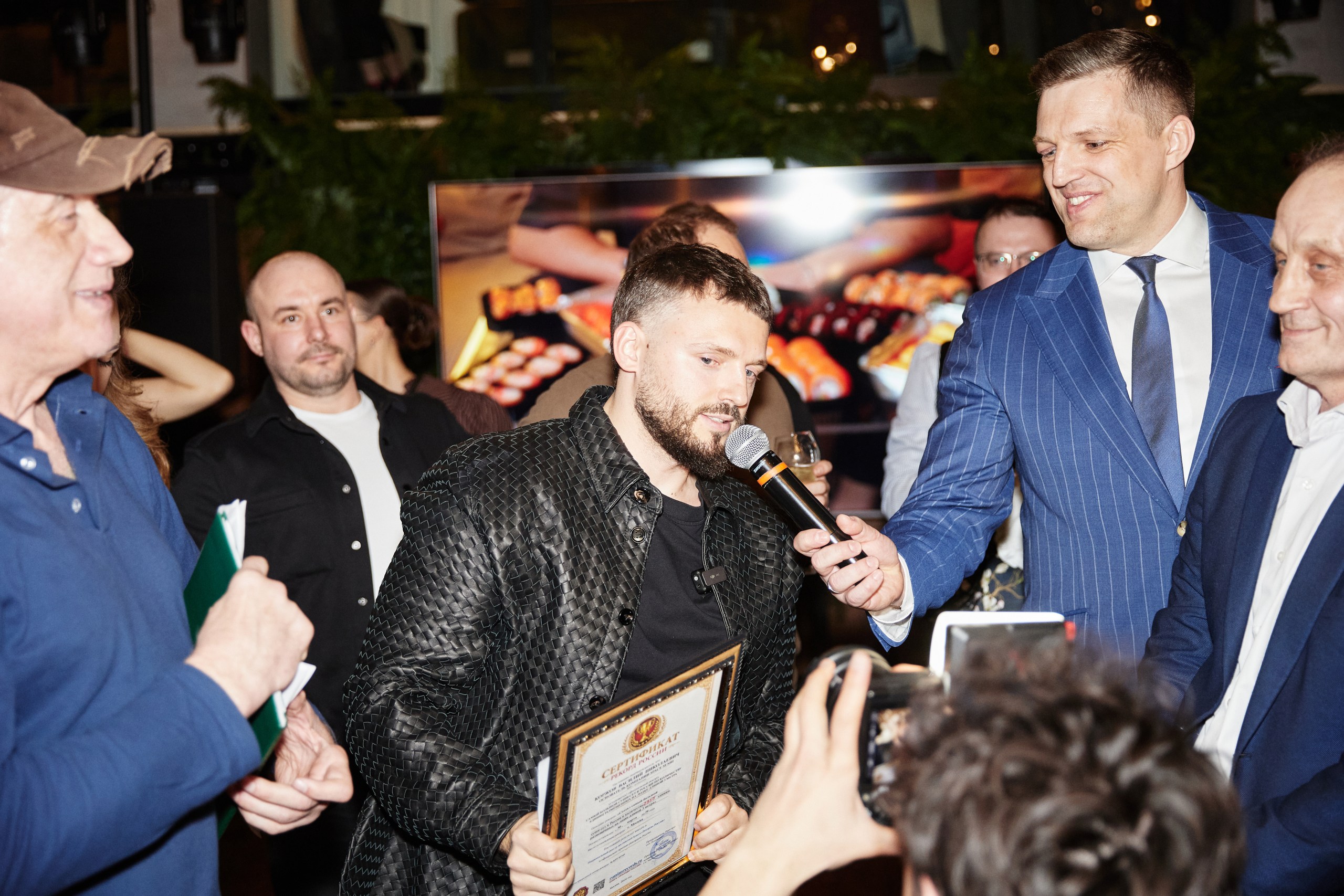 Главным событием вечера стала презентация гигантской композиции, размещенной на трехметровой декоративной лодке. Общий объем рекордного сета составил 2355 единиц суши. Уникальному блюду было присвоено название «Союз-2000», подчеркивающее масштаб, объединяющую атмосферу и отсылку к космической тематике.